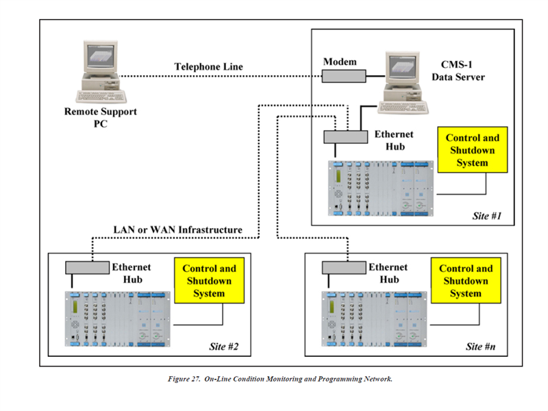 ، برای محافظت از کل قطار ماشین استفاده میشود، به شکل ۱ مراجعه کنید. MPC-4 که برای استفاده در توربینهای گازی طراحی شده است، امکان تجمیع حفاظت از ارتعاش و احتراق را در یک سیستم نظارت واحد فراهم میکند.
